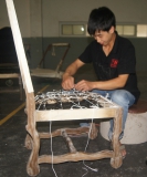 Chinese furniture production, where one worker finishes a complete item from